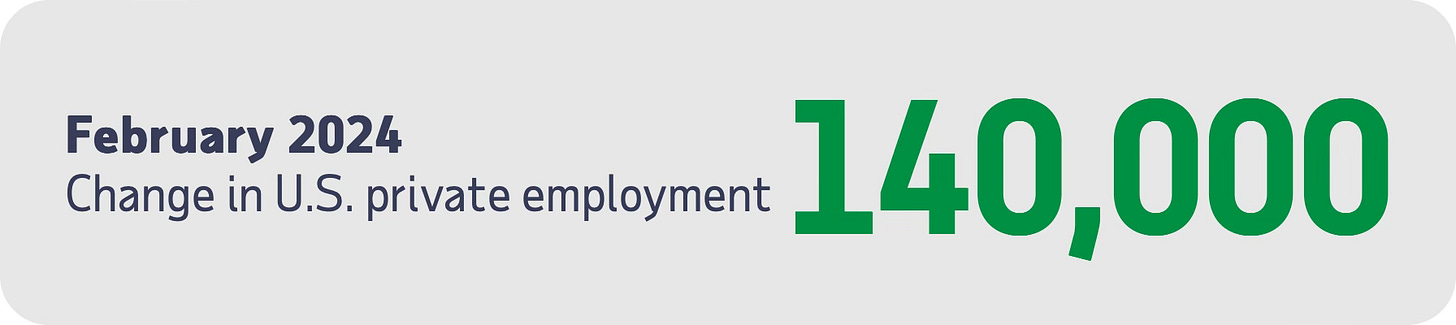 The private sector added 140,000 jobs in February, showing improvement but falling slightly below analyst forecasts for 150,000. This information comes from the payroll processing firm ADP. While slower than predicted, the growth reflects a still-active labor market.